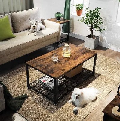 Charging Station Nightstand with Fabric Drawers, Color - Vintage Brown